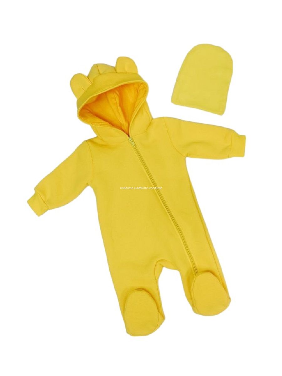"МоёДитё" комбинезон выполнен из футера с начёсом. Комбинезон с капюшоном на подкладке и декорирован сверху ушками, с закрытыми ножками, рукава на манжетах, спереди косая молния до конца одной ножки. Шапочка из кашкорсе можно одевать как с отворотом, так и без. Очень хорошо тянется.