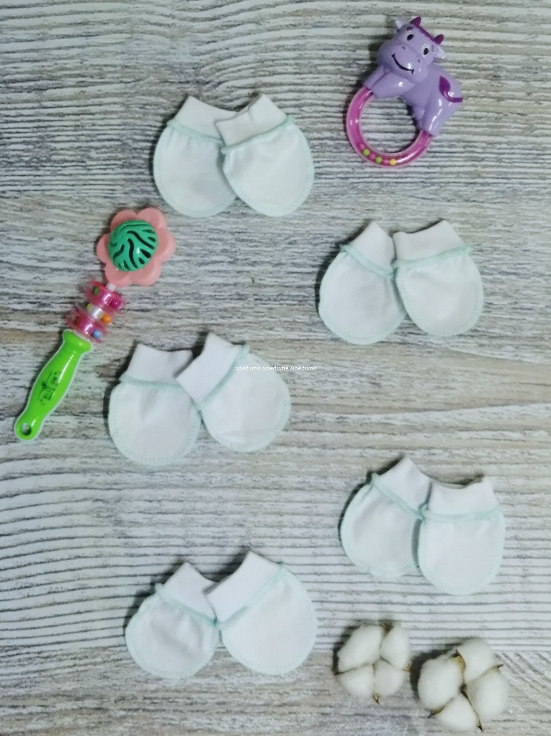 "МоёДитё" царапки кулирка белые + мята ЦК018 "Гардения"